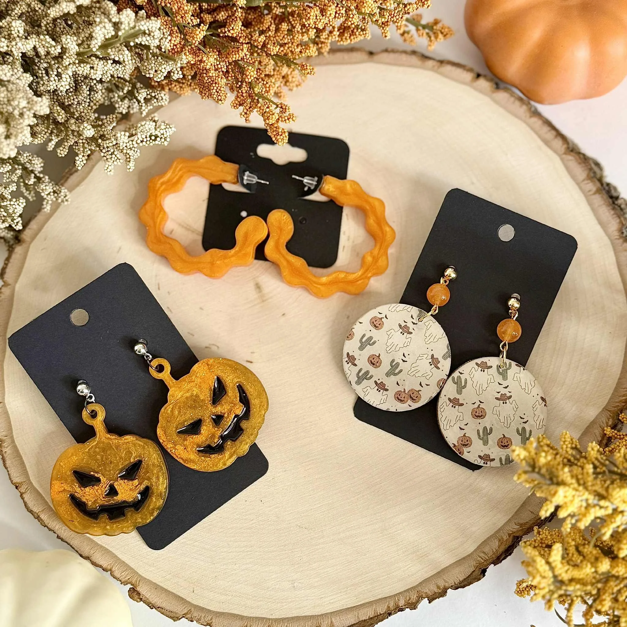 Get into the spooky spirit with our handmade earrings crafted from lightweight wood and colorful resin. From playful pumpkins to candy corn and skulls, each pair is designed to be fun, festive, and comfortable enough to wear all season long.
